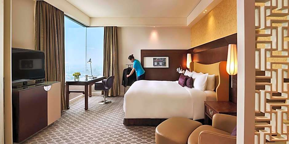 This air-conditioned premier room opens up to panoramic views of West Lake. It is fitted with carpeted flooring, a flat-screen TV and a desk. The private bathroom includes a separate bathtub and a standing shower.